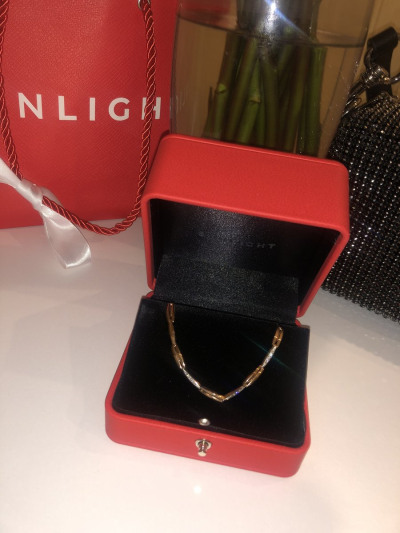 Милый браслетик, гладенький, брилиантами блестит. Чудо! Довольна покупкой.