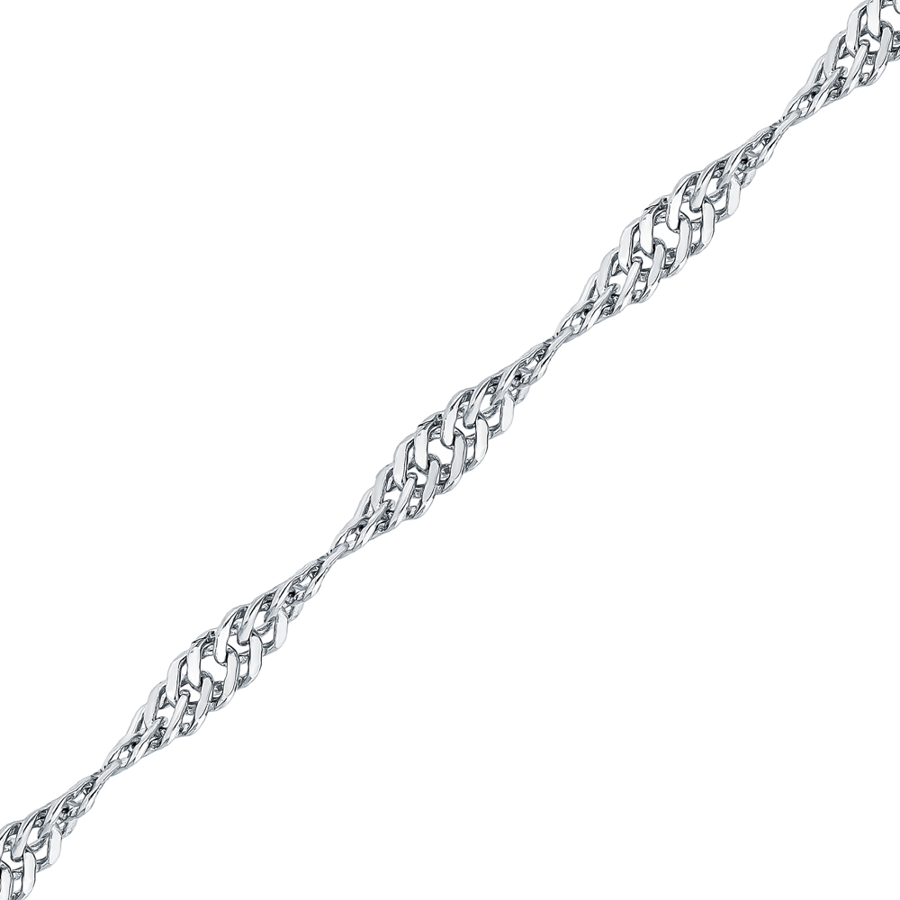 "Сингапур" - плетение на основе двойного панцирного плетения. Звенья в цепи соединены в сложную спиралевидную структуру, обеспечивая потрясающий блеск от солнечных лучей под разным углом.