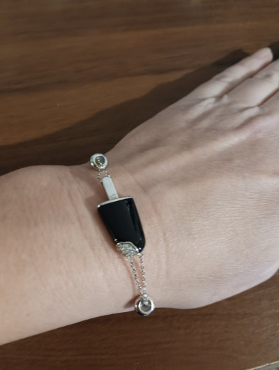 Прикольный серебряный браслетик с ониксом. Приобрела в дополнению к изделию артикула 61163. Отличный получается подарочный комплект. Заказывала через сайт, доставка вовремя.