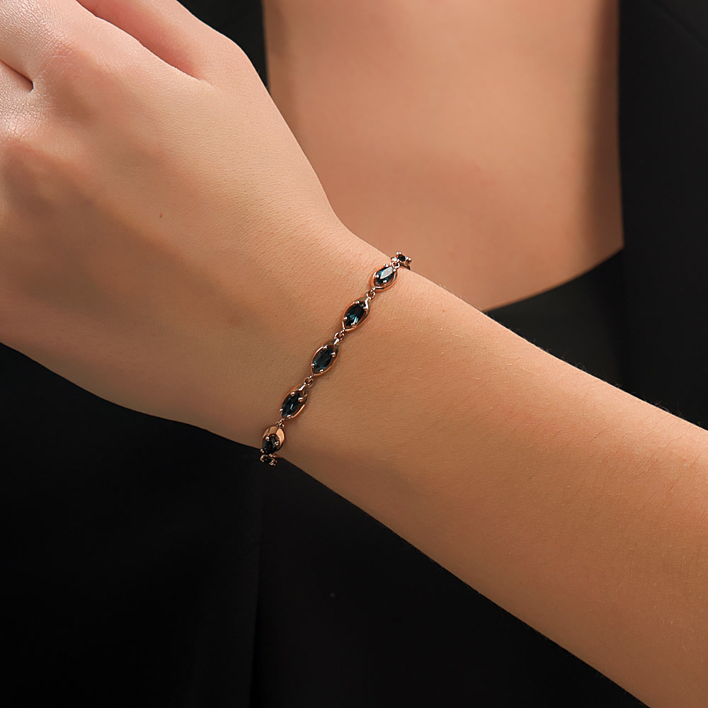 В редких случаях характеристики украшения или упаковка могут иметь отличия от представленных на фото или в описании.Браслет с 9 топазами лондон природными, 3.36 карат;