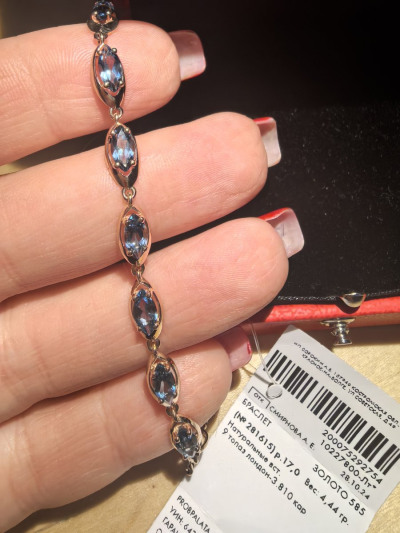 Золотой браслетик с Лондон-топазами,выглядит шикарно, камни великолепные, насыщенного цвета, подбирала к своему браслету, получается красивый дуэт, элегантный и очень эффектный! Рекомендую