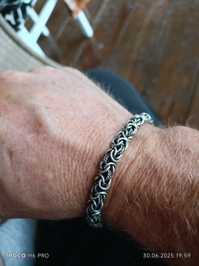 Покупала в подарок мужчине . Браслет очень понравился, увесистый , выглядит достойно . Жаль нет чепочки для комплекта