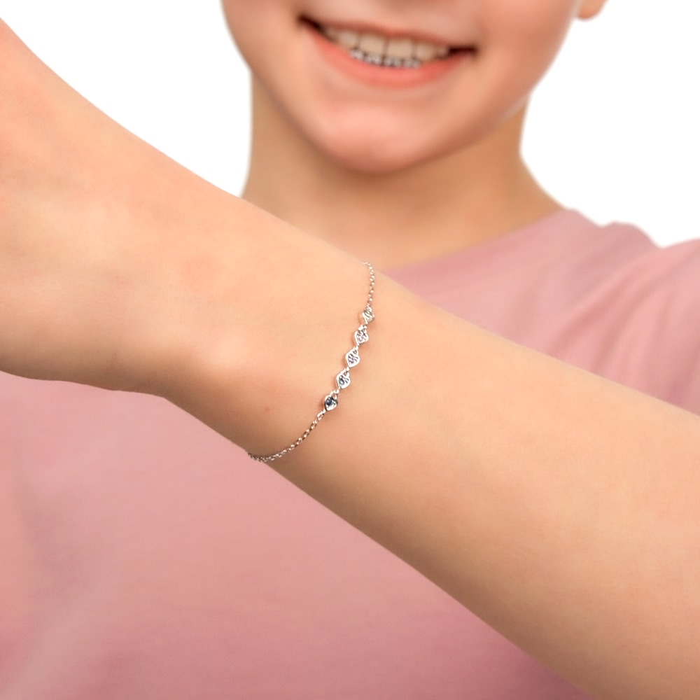 Этот браслетик просто очаровательный – разноцветные камушки в форме сердечек выглядят очень нежно и весело!