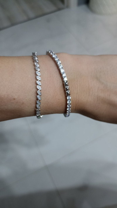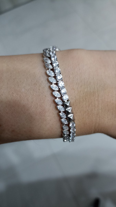 Браслет милый, для меня главно было чтоб он не царапался и не цеплялся за одежду, закрепка камней гладкая, камни сверкают. Правдо я удалила лишнюю длину дополнительной цепочки, так как не люблю чтоб свисала.