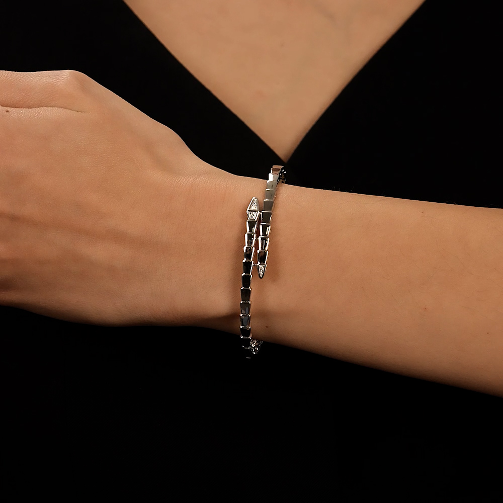 • Браслет с 2 бриллиантами природными, 0.04 карат, огранка круг 57 граней, цвет 4, чистота 6, тип огранки А;