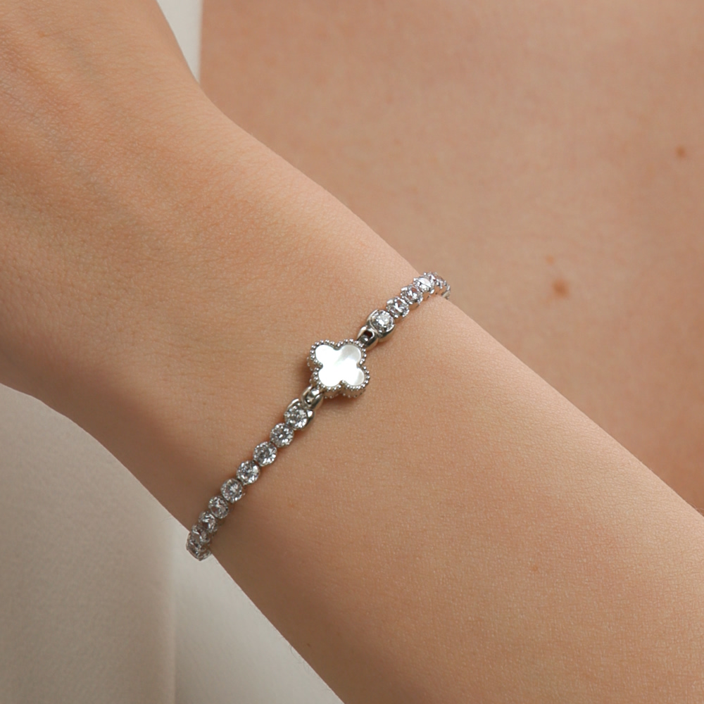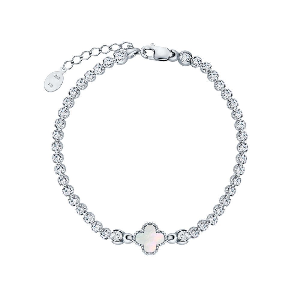 Серебряный браслет с фианитами и перламутрами имитациями