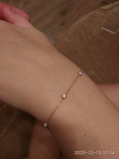 Милый браслет, его можно носить не снимая.Подходит абсолютно ко всему, нежно смотрится. Так как купила в подарок, удобно, что регулируется размер. очень порадовала скидка. Спасибо, sunlight.
