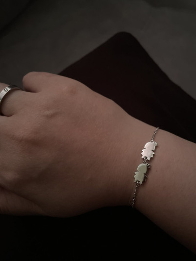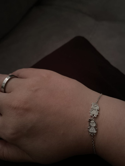 Серебряный браслет с двумя девочками из фианитов, интересная конечно задумка)* хочется в золоте Очень миленькое украшение, хочу второе, но уже со словом и одной девочкой , все таки три лочки )
