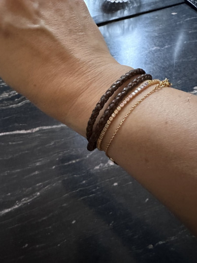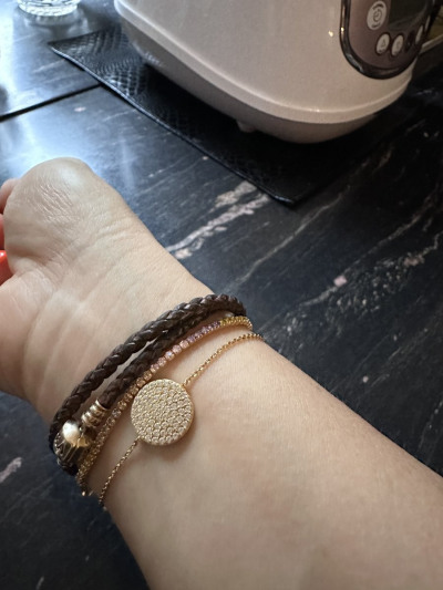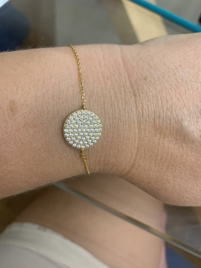 Очень милый браслет. Фианиты искрятся и переливаются. Цвет металла более яркий чем желтое золото.