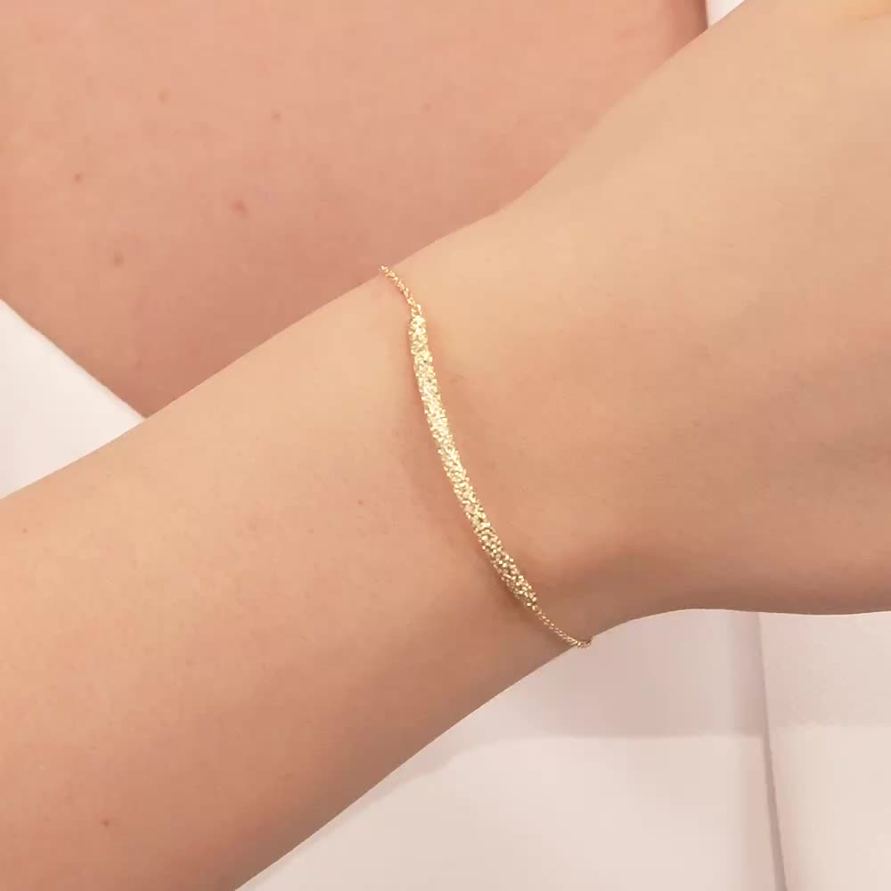 Алмазная огранка – это распространённый в ювелирном деле вид обработки драгоценного металла. Рисунок наносится на поверхность изделия при помощи алмазных резцов, которые придают металлу оригинальную форму. Изысканный и лаконичный дизайн браслета из Италии подойдет для любого образа.