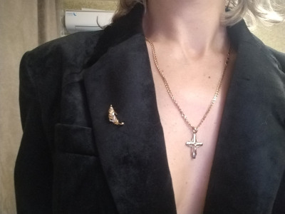 Давно хотела себе брошь... И вот наконец-то доросла до этого украшения. Тот случай, когда к данному украшению заранее был куплен жакет 😊, а брошь стала акцентом. Да, этот аксессуар не на каждый день, но покупка, в целом, того стоит. Думаю, со временем возьму еще одну с жемчугом или изумрудом (в каталоге видела с природным изумрудом, очень понравилась).