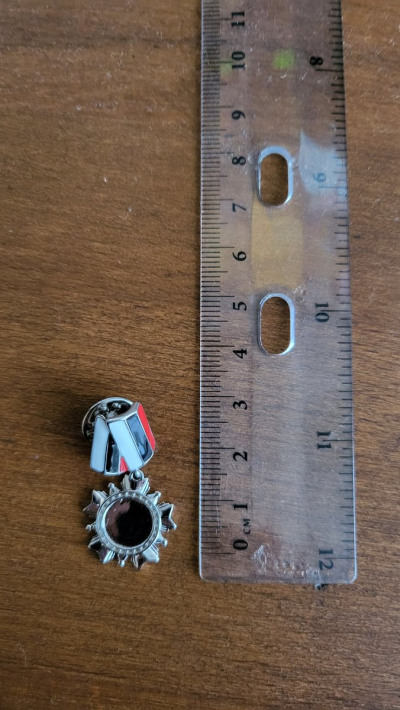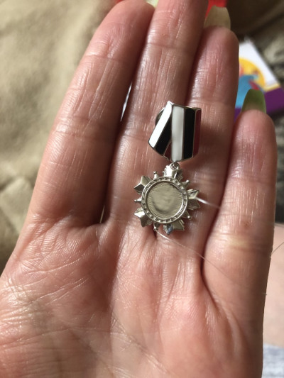 Из плюсов: Маленькая, реально маленькая, медалька. Она прекрасно может разместиться на галстуке или планке ворота рубашки, пиджаке, пальто или свиторе. Смотрится на Ура! Из минусов, это маленький недостаток в креплении: толстовата игла, защелка на иглу сделана громоздко и несоразмерна для этого украшения. На тонкую блузу, где застежка может соприкасаться с кожей будет не комфортно, так как застежка имеет сильно выступающюю часть и шероховатую поверхность. Купила, так как давно её хотела приобрести, но производитель, возможно учтёт и доработает этот маленький минус. Было бы здорово ей придумать пару))