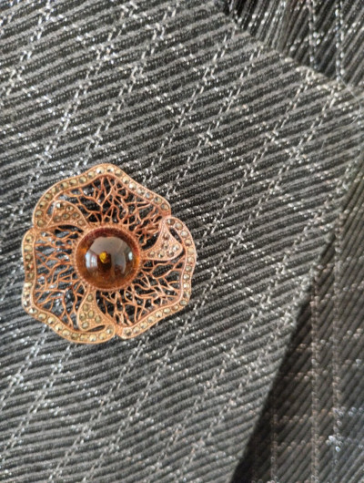 Шикарная брошь, покупалась несколько лет назад, за это время практически не потемнела. На фото ещё ни разу не чистила. Даже на фото видно, что янтарь на столько чистый, что как зеркало, передает все вокруг