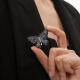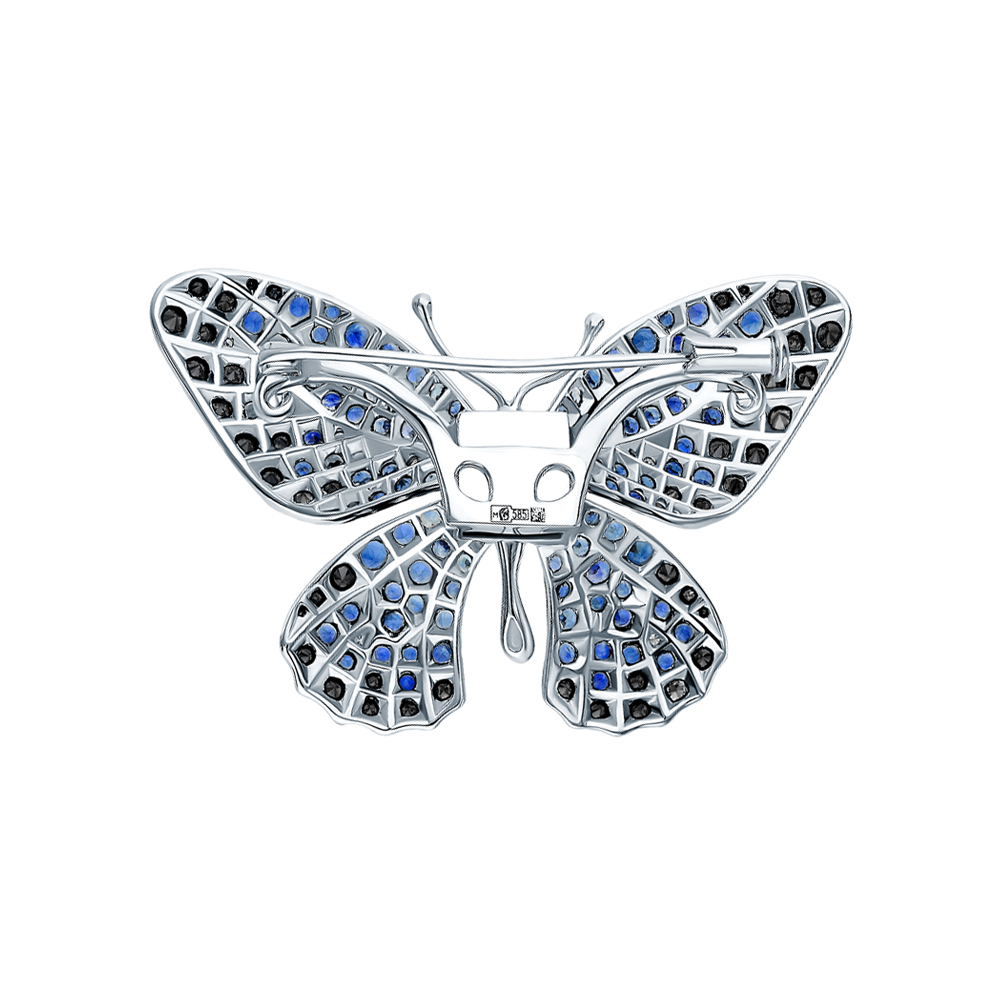 Золотая брошь с бриллиантами черными природными и сапфирами природными