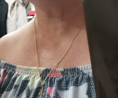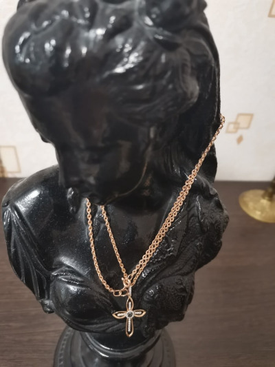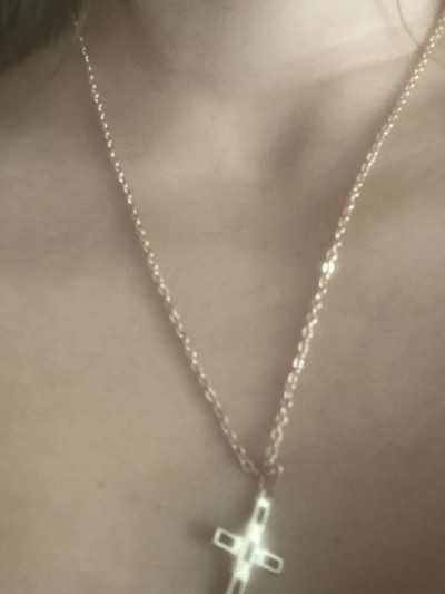 Очень сияет, слегка перекручивается на крестике, но благодаря хорошей длине 55см это вообще не проблема, так что берите не менее длину и всё будет хорошо