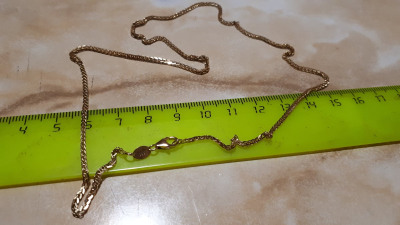 Цепочка понравилась. Вес 4.68. Плетение выглядит солидно и изящно одновременно. Н часто встречается. Есть похожая у известного бренда на С., но очень тонкая. А эта- то что надо для моего нового крестика. Из минусов- золото несколько желтит, ярче, чем мои остальные украшения. Надеюсь со временем слегка оботрется. Проба присутствует, в том числе Российская.