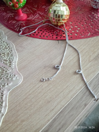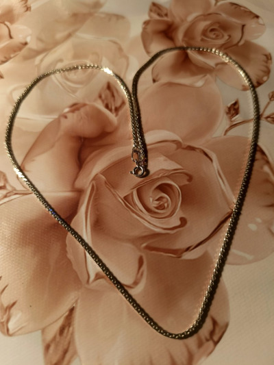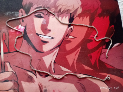 Нужна была цепочка,не тонкая и не крупная,такую и выбрала с помощью милого продавца.Очень понравилась цепочка,плетение колос,для купленного ранее кулона с буквой М
