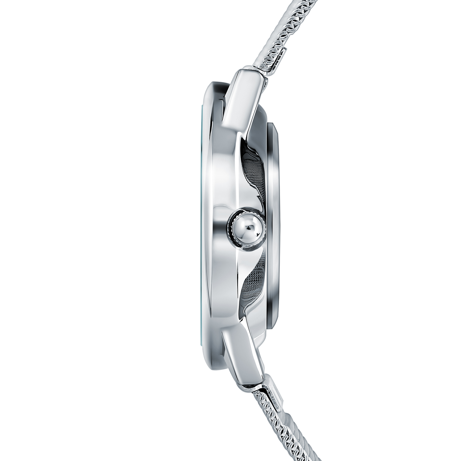 Корпус выполнен из металла*, минеральное стекло с антибликом защищает циферблат от внешнего воздействия. Японский кварцевый механизм Seiko PC20S обеспечивает точный ход и оснащен функциями времени в 12 часовом формате. Водозащита 3 bar (30 m/99 ft) защитит от брызг и дождя.