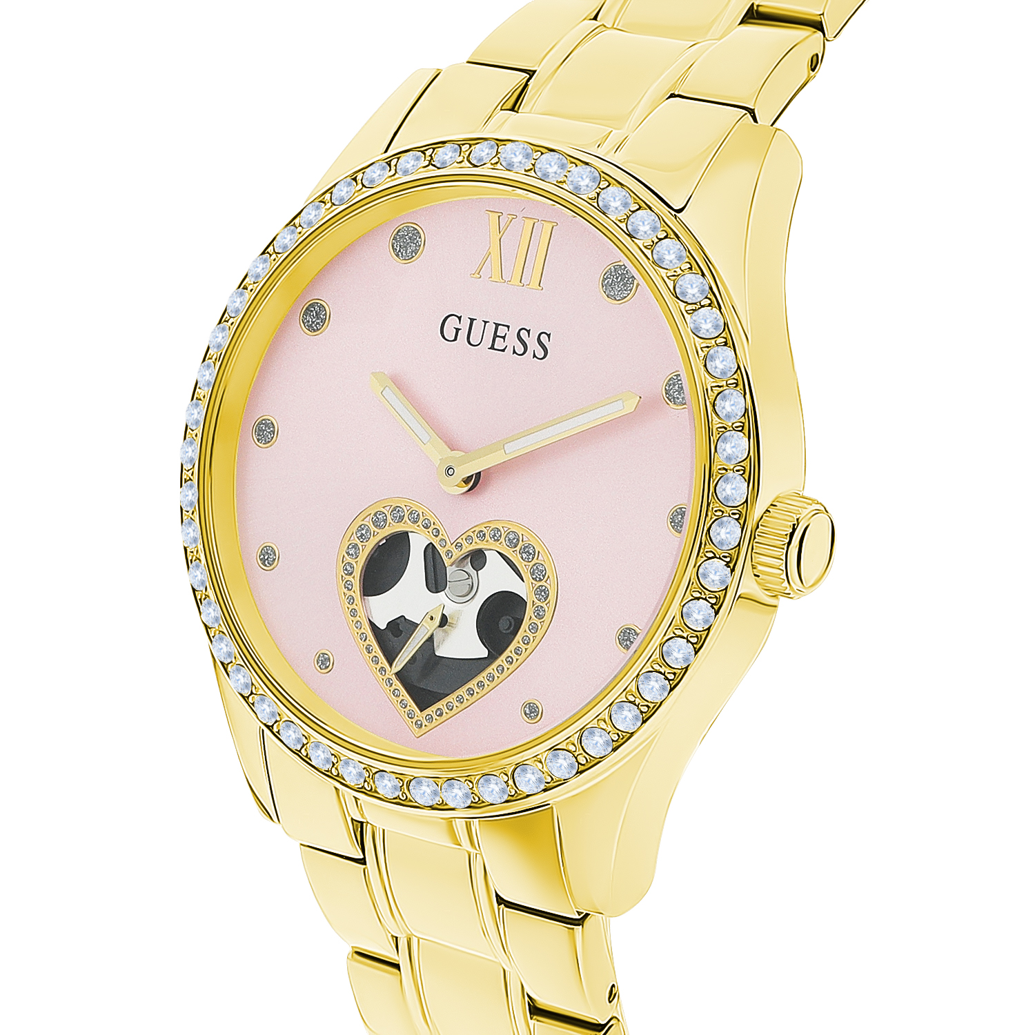 Женские наручные часы GUESS модель GW0380L2 из коллекции GUESS TREND. Японский кварцевый механизм VL57B1S EPSON с вынесенной секундной стрелкой использующий элемент питания SR920SW. Стальной корпус размера 38 мм. Минеральное стекло. Стальной браслет. Водостойкость 5 АТМ (мытье рук, дождь). GUESS – лидер в индустрии фешен часов по длительности присутствия на рынке и по ширине коллекции, ежегодно создает более 100 новинок. Компания GUESS Watches, основанная в 1984 году в Лос-Анджелесе (США) как пионер революции, возглавила трансформацию часов из простого инструмента для определения времени в стильный аксессуар. Бренд не боится экспериментировать. Разнообразные формы корпуса, сложно декорированные циферблаты, уникальный дизайн браслетов. GUESS – это про тренды и технологии в мире моды. Это яркие и дизайнерские часы, призванные угодить самым смелым фешн-драйверам и энтузиастам моды по всему миру. Страна-изготовитель: Филиппины. При изготовлении используются только надежные Японские механизмы. ВНИМАНИЕ! Заявленная водостойкость гарантируется только при плотно закрытой или закрученной заводной головке!