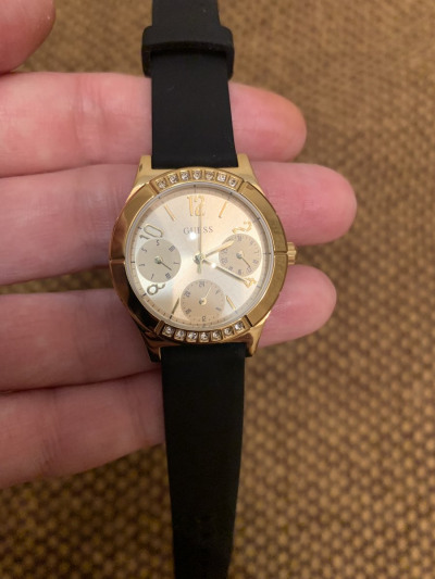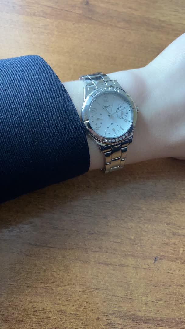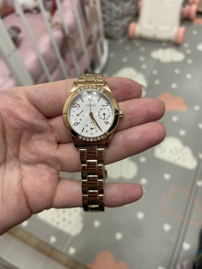 Долго выбирала в каталоге, т.к. нужны были часы под желтое золото. В результате остановила свой выбор на этих прекрасных часах. Привлёк сдержанный и элегантный внешний вид , отсутствие излишнего декора , а также небольшой размер корпуса самих часов( не люблю большие громоздкие модели). Мягкий силиконовый ремешок очень удобен и рассчитан , даже на очень тонкое запястье ( у меня , как раз такое). В целом ,достаточно универсальный аксессуар от guess , будет уместен для разных образов и ситуаций.