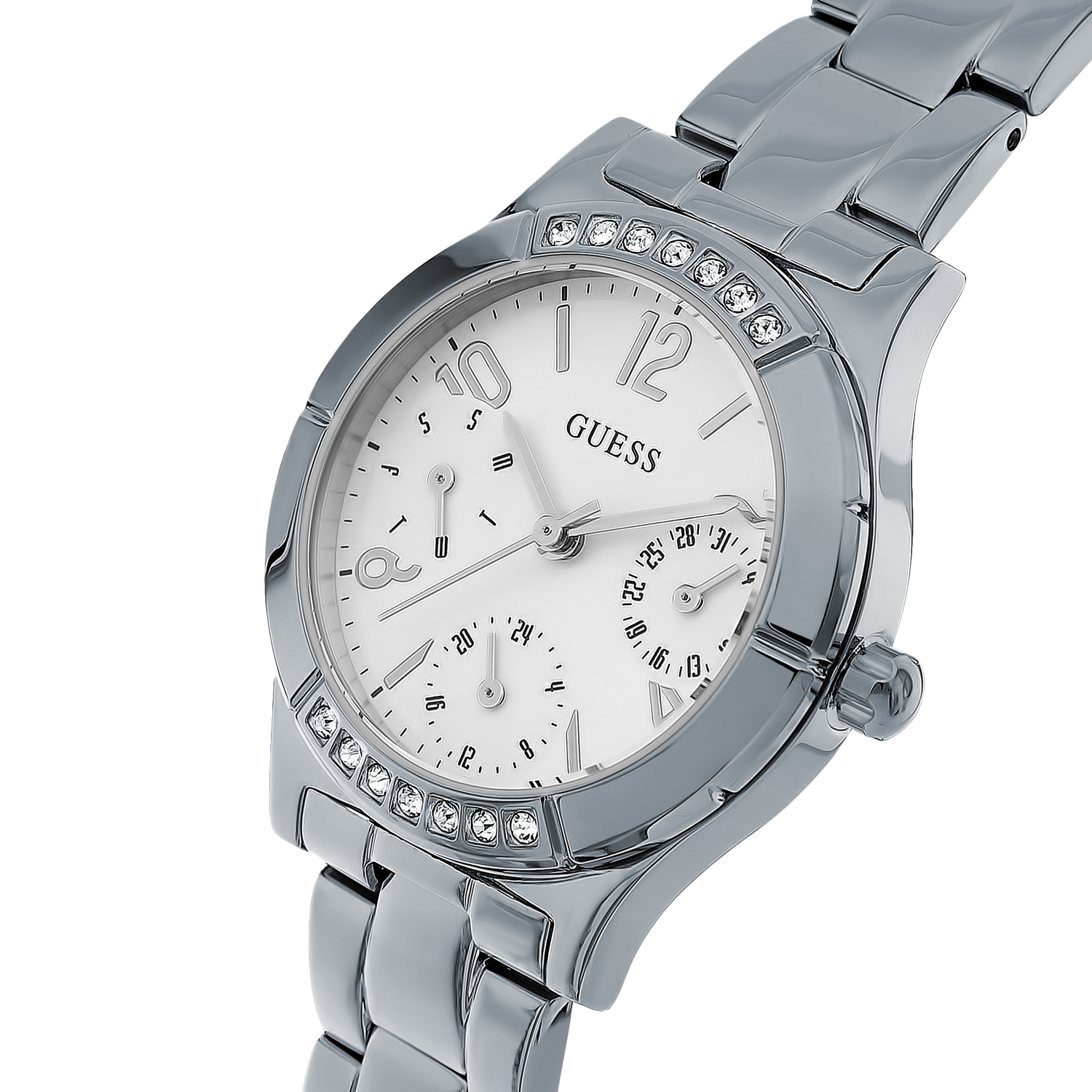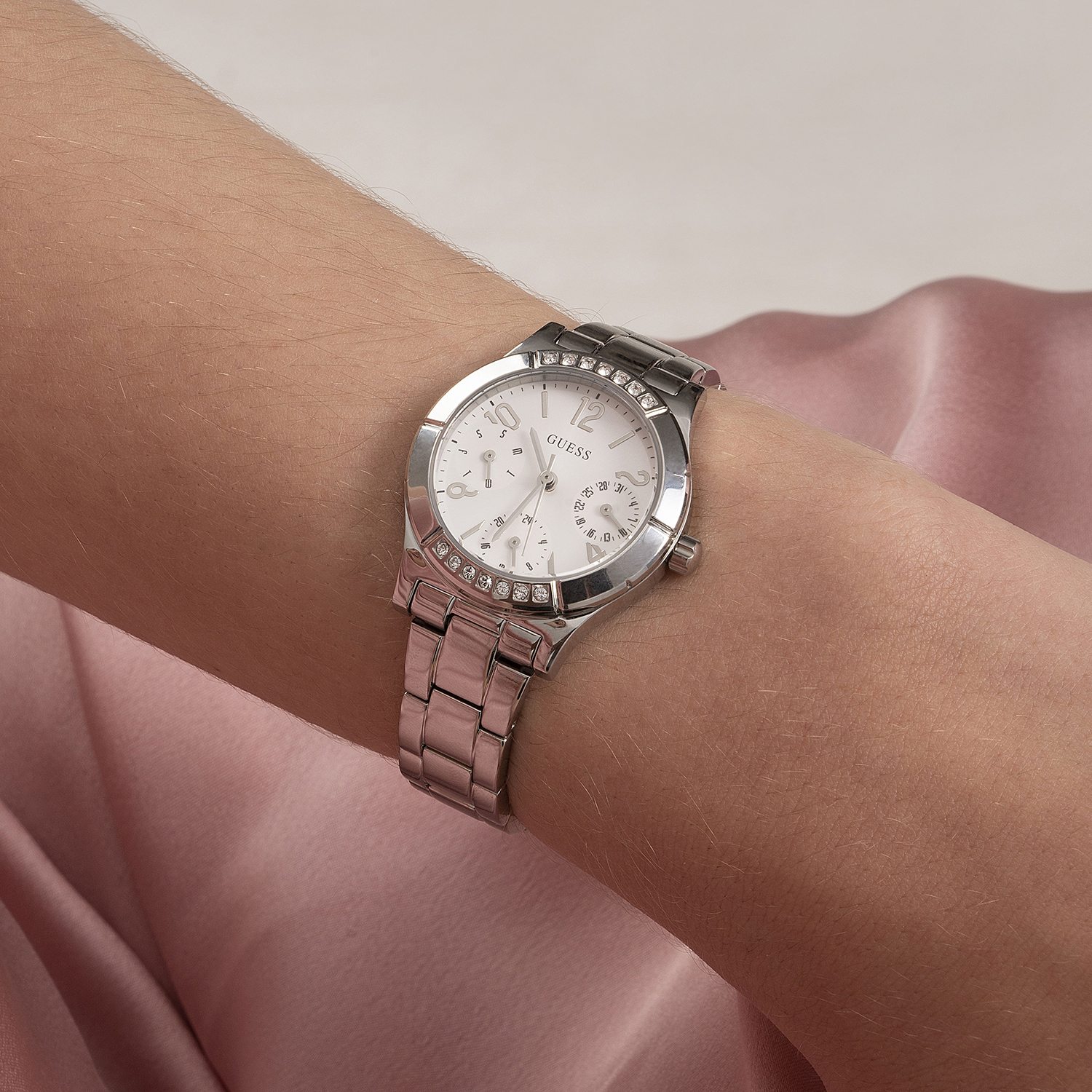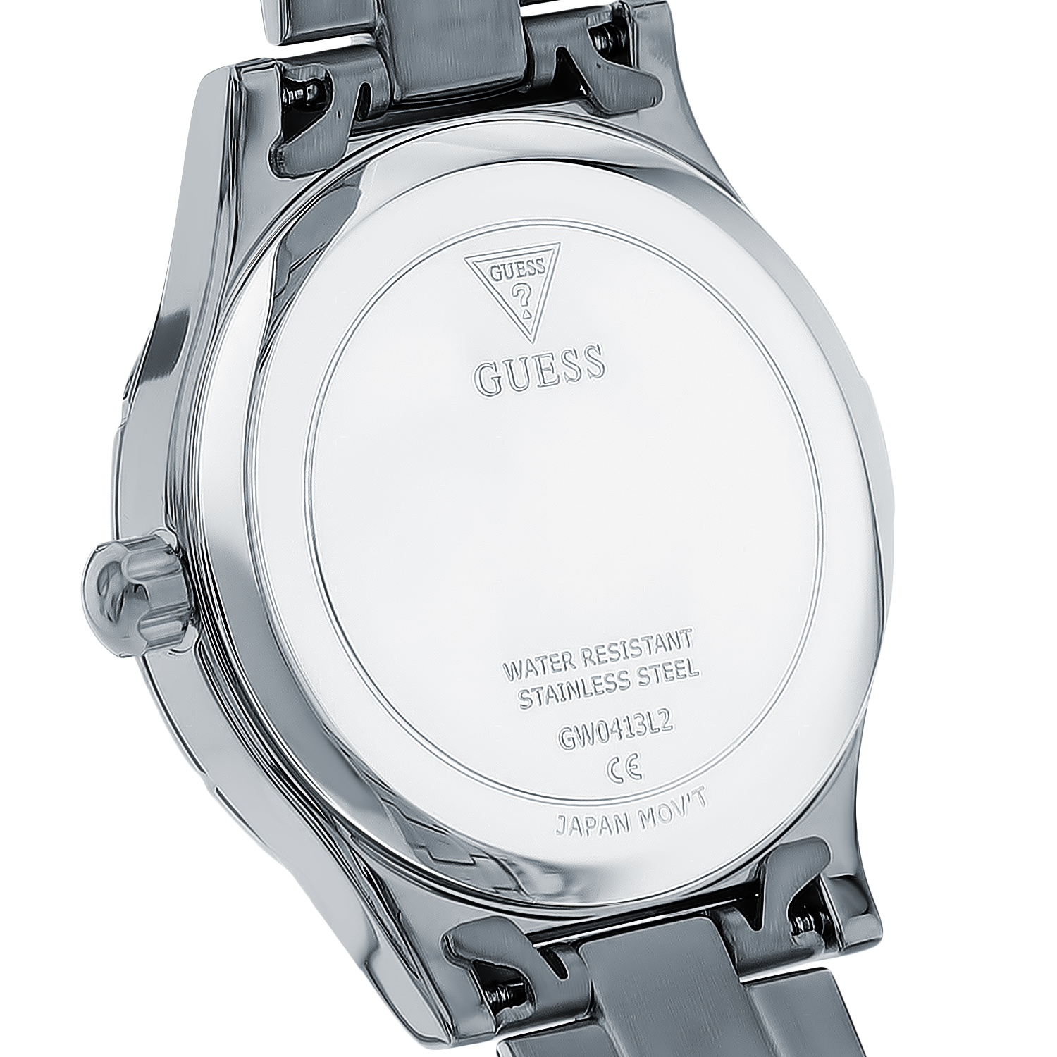 Женские наручные часы GUESS модель GW0413L1 из коллекции GUESS SPORT. Японский кварцевый мультифункциональный механизм VX3JE1 SEIKO (TMI) с вынесенными на отдельные циферблаты датой, днем недели и часовой стрелкой в режиме 24 часа использующий элемент питания SR920SW. Стальной корпус размера 29 мм. Минеральное стекло. Стальной браслет. Водостойкость 3 АТМ (защита от брызг). Остерегайтесь попадания часов в воду. GUESS – лидер в индустрии фешен часов по длительности присутствия на рынке и по ширине коллекции, ежегодно создает более 100 новинок. Компания GUESS Watches, основанная в 1984 году в Лос-Анджелесе (США) как пионер революции, возглавила трансформацию часов из простого инструмента для определения времени в стильный аксессуар. Бренд не боится экспериментировать. Разнообразные формы корпуса, сложно декорированные циферблаты, уникальный дизайн браслетов. GUESS – это про тренды и технологии в мире моды. Это яркие и дизайнерские часы, призванные угодить самым смелым фешн-драйверам и энтузиастам моды по всему миру. Страна-изготовитель: Филиппины. При изготовлении используются только надежные Японские механизмы. ВНИМАНИЕ! Заявленная водостойкость гарантируется только при плотно закрытой или закрученной заводной головке!