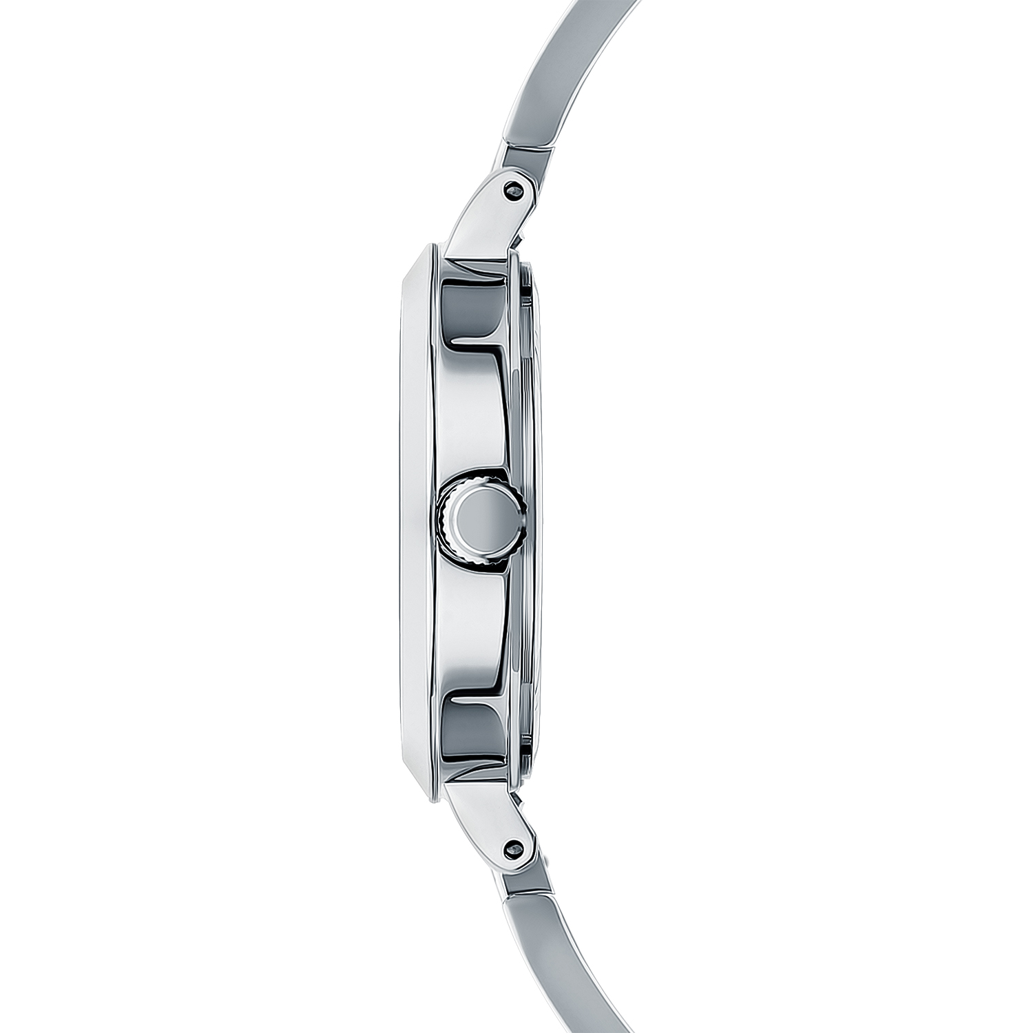 Минимализм и лаконичность. Удобные, цвет очень красивый, прям серебро. Слышно как тикает секундная стрелка. Укоротить браслет не составило трудов самой.