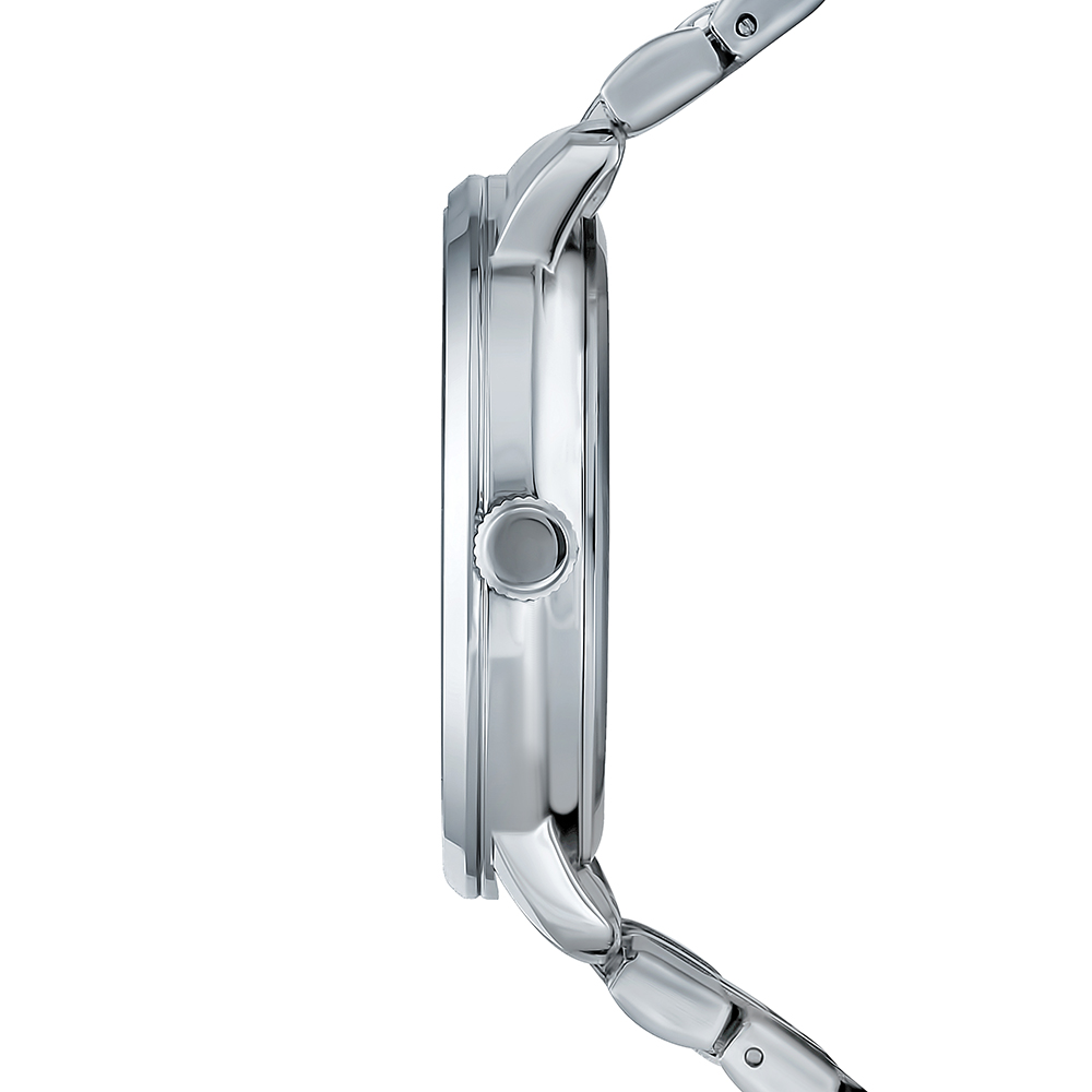 Корпус выполнен из металла*, минеральное стекло с антибликом защищает циферблат от внешнего воздействия. Японский кварцевый механизм Seiko PC21S обеспечивает точный ход и оснащен функциями времени в 12 часовом формате и секундной стрелки. Водозащита 5 bar (50 m/165 ft) защитит от брызг и дождя.