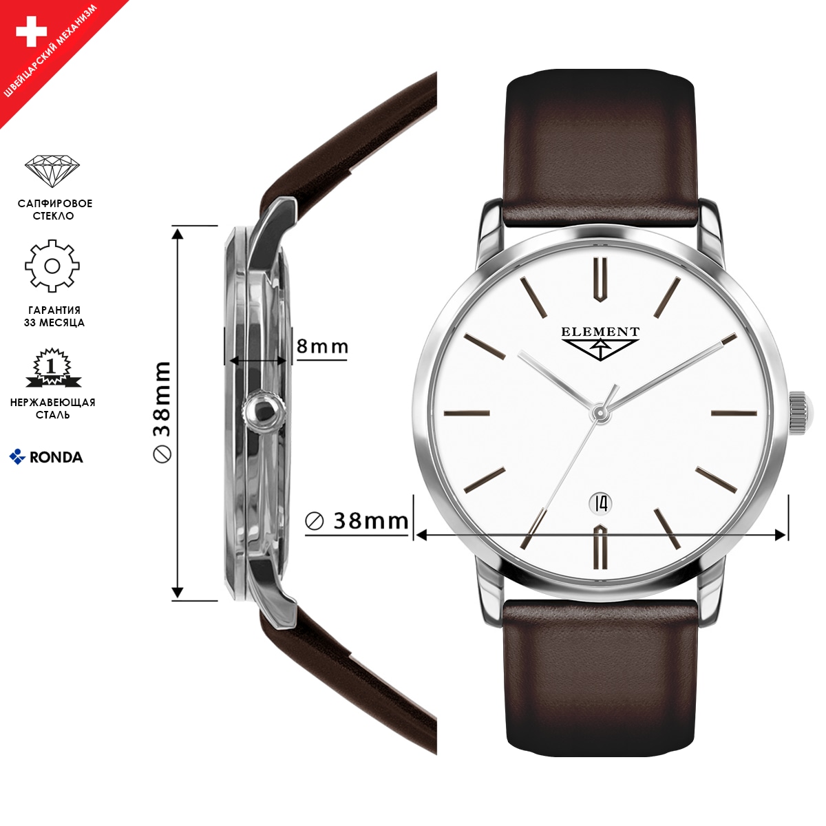 Минималистичные, элегантные часы. Очень понравилось простота дизайна. Кожаный ремешок, сапфировое стекло и стальной корпус. Отличные часы за свои деньги