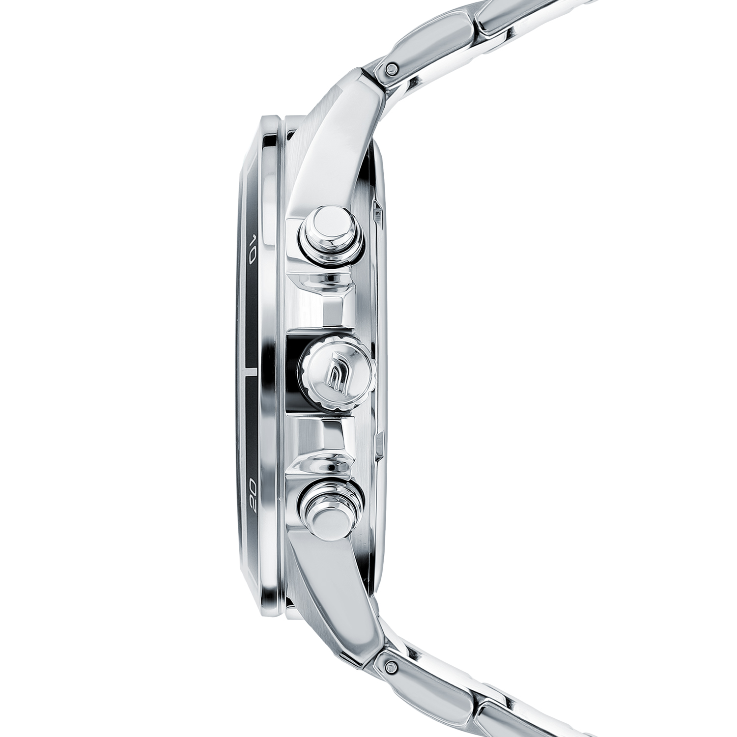 Мужская классическая и узнаваемая модель Edifice со спортивным характером из серии EFR-526 в стальном корпусе с легко читаемым циферблатом! Помимо яркого современного дизайна на циферблате часов вы найдете три функциональных окошка отвечающих за секундомер, фиксирующий прошедшее время, время прохождения круга и время окончания измеряемые с точностью до десятой доли секунды. Пределы измерения достигают 1 часа. Кроме того на циферблате есть окошко текущей даты. Как и все эдифайсы часы водонепроницаемы, а циферблат защищен закаленным минеральным стеклом сферической формы.
