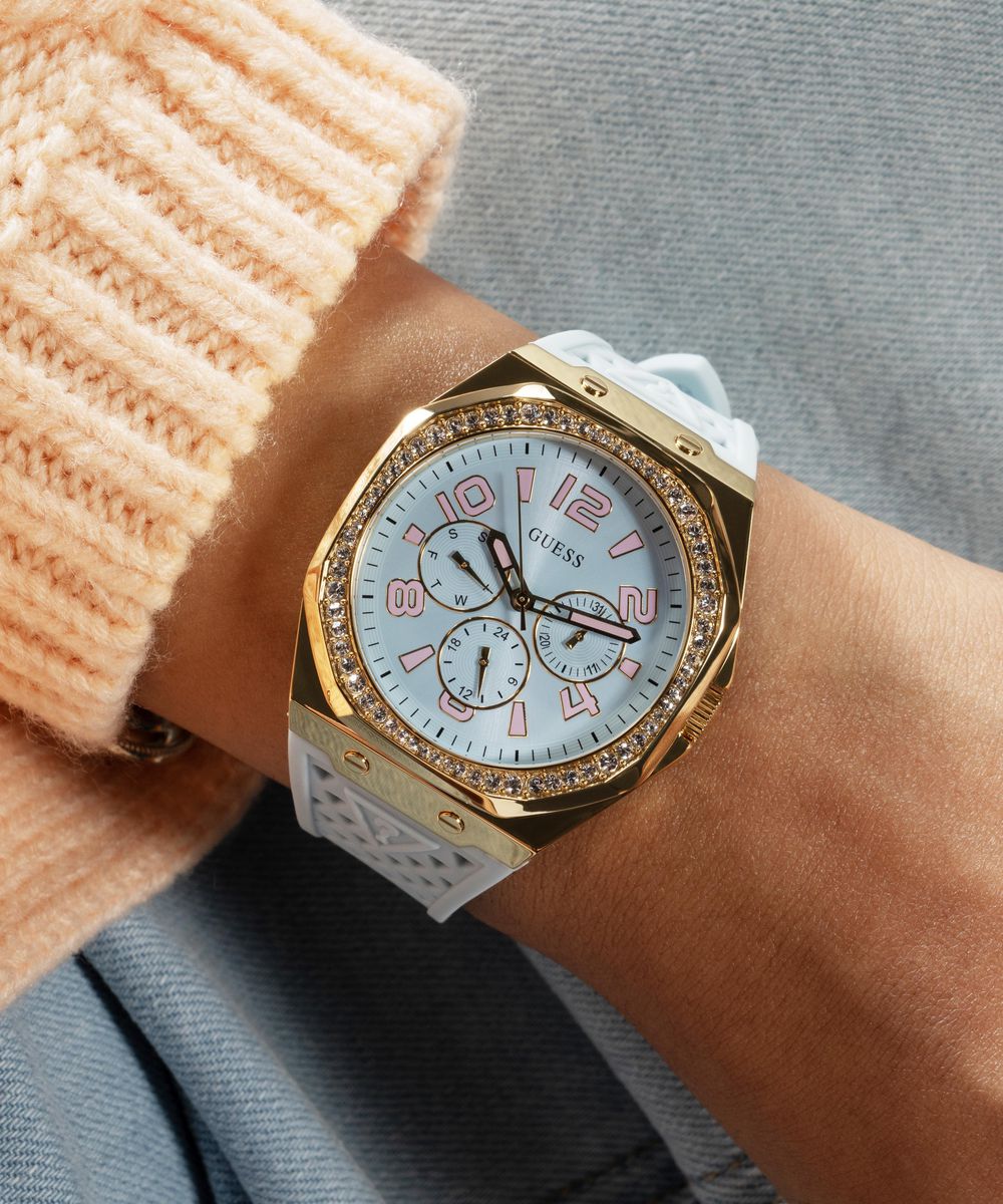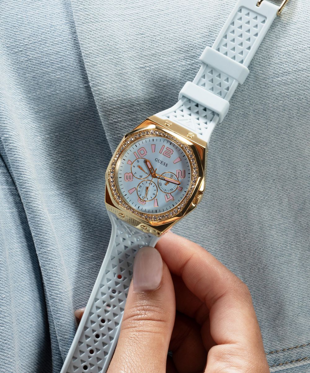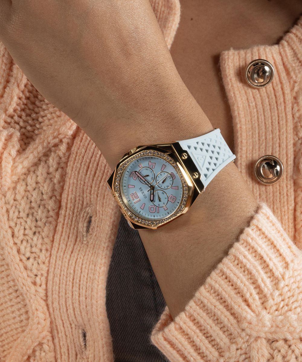 Женские наручные часы GUESS модель GW0694L1 из коллекции GUESS TREND. Японский кварцевый мультифункциональный механизм VX3JE1 SEIKO (TMI) с вынесенными на отдельные циферблаты датой, днем недели и часовой стрелкой в режиме 24 часа использующий элемент питания SR920SW. Стальной корпус размера 39.5 мм. Минеральное стекло. Силиконовый ремешок. Водостойкость 3 АТМ (защита от брызг). Остерегайтесь попадания часов в воду. GUESS – лидер в индустрии фешен часов по длительности присутствия на рынке и по ширине коллекции, ежегодно создает более 100 новинок. Компания GUESS Watches, основанная в 1984 году в Лос-Анджелесе (США) как пионер революции, возглавила трансформацию часов из простого инструмента для определения времени в стильный аксессуар. Бренд не боится экспериментировать. Разнообразные формы корпуса, сложно декорированные циферблаты, уникальный дизайн браслетов. GUESS – это про тренды и технологии в мире моды. Это яркие и дизайнерские часы, призванные угодить самым смелым фешн-драйверам и энтузиастам моды по всему миру. Страна-изготовитель: Филиппины. При изготовлении используются только надежные Японские механизмы. ВНИМАНИЕ! Заявленная водостойкость гарантируется только при плотно закрытой или закрученной заводной головке!