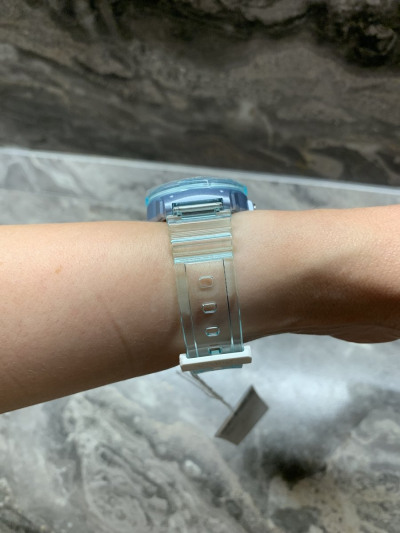 Купила и пару недель думала, не вернуть ли мне их. Поставила 5 звёзд потому, что качество часов хорошее. Меня не впечатлил внешний вид, но это чисто моё субъективное мнение. Плюсы: легкие, невесомые, необычные, ремень не требует регулировки, так как отверстия для застёжки по всей длине ремня. На моих фото видно как часы сидят на запястье 12см в обхвате (на узком). На руке сидят комфортно. Что мне не понравилось: показались детскими, не серьёзными, как игрушка, дешёвыми. Возможно, в этом их фишка. Возможно, мне просто не привычно, так как все мои часы солидные, классические, тяжелые. Спросите зачем тогда заказывала эти?))) Захотелось чего-то цветного, голубого, летнего😁 Но на промо фото они выглядят действительно сочнее и дороже, чем оказались в жизни. У меня есть силиконовые часы Версаче, они тяжелые, у них сам ремень даже плотнее, толще. А у этих часов тонкий и корпус из пластика. В общем, тут дело вкуса.