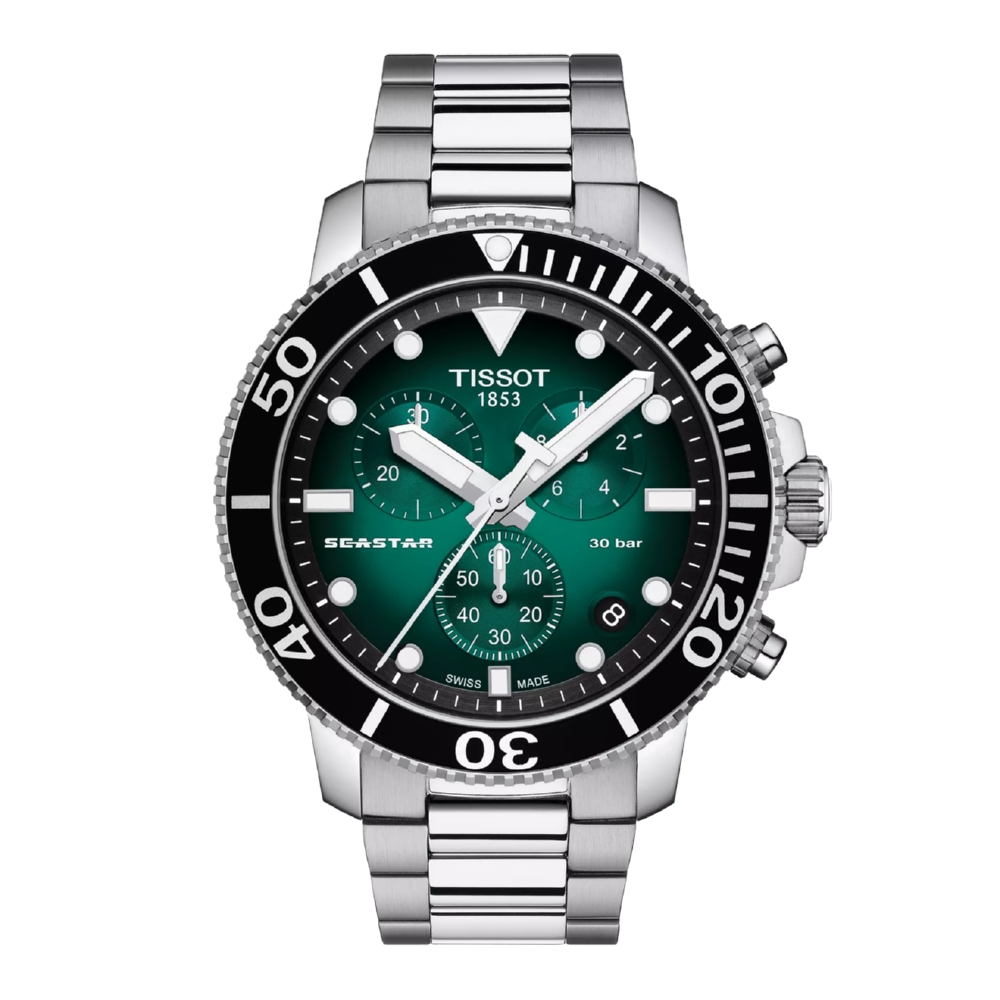 Оригинальные наручные часы Швейцарского бренда TISSOT мужские кварцевые из коллекции Seastar 1000. Артикул T1204171109101 альтернативный T120.417.11.091.01. Стальной корпус диаметром 45,5 мм. толщиной корпуса 12,82 мм. Сапфировое стекло, устойчивое к царапинам, с двусторонним антибликовым покрытием. Швейцарский кварцевый механизм ETA G10.212 функционал: часы, минуты, малая секундная стрелка, дата. EOL (индикатор окончания срока службы батареи). Может измерять промежутки времени до 30 минут, Стандартная функция хронографа, функция ADD (СЛОЖИТЬ) (отрезки времени), функция SPLIT (РАЗДЕЛИТЬ) (промежуточное время). Элемент питания RENATA 394. Водонепроницаемость до давления 30 bar (300 m/984 ft). Допустимы погружения с плотно завинченной заводной головкой. Не нажимать кнопки под водой. Стальной браслет с креплением 22 мм. Раскладывающаяся застежка с предохранительной застежкой и дайверским удлинителем, сменный быстросъемный браслет. В кристально чистой воде вы можете видеть, как солнечные лучи пробиваются сквозь поверхность. В мыслях — только спокойствие. На вашем запястье — часы Seastar 1000 — дверь в этот подводный мир. Они шикарны, дерзки и универсальны. ВНИМАНИЕ! Заявленная водостойкость гарантируется только при плотно закрытой или закрученной заводной головке!