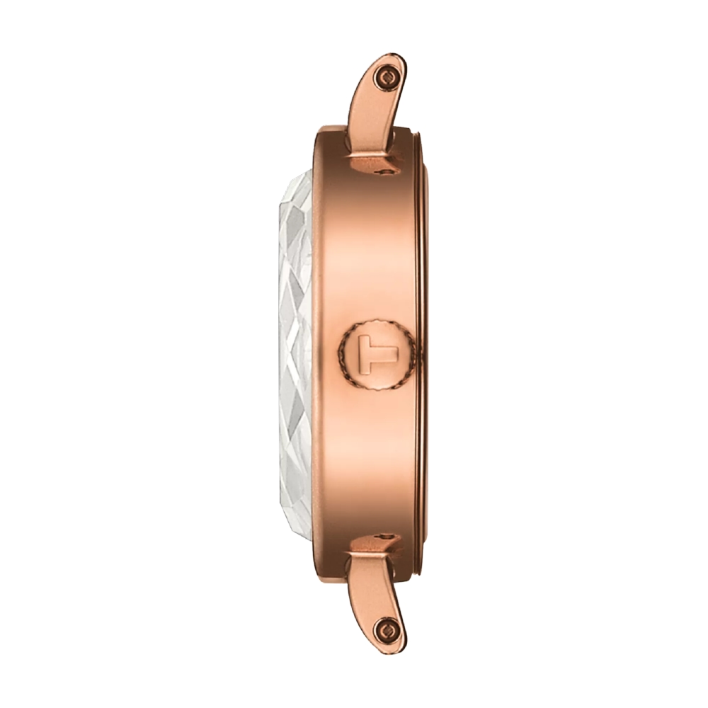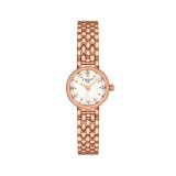 Оригинальные наручные часы Швейцарского бренда TISSOT женские кварцевые из коллекции Lovely Round. Артикул T1400093311100 альтернативный T140.009.33.111.00. Стальной корпус с PVD покрытием диаметром 19,5 мм. толщиной корпуса 6,3 мм. Сапфировое стекло, устойчивое к царапинам. Швейцарский кварцевый механизм ETA 901.001 функционал: часы, минуты Элемент питания RENATA 321. Водонепроницаемость до давления 3 bar (30 m/99 ft). Допускается нахождение часов при высокой влажности. Плавать в таких часах запрещено. Стальной браслет с креплением 6 мм. Застежка-бабочка с кнопками. Тиссо Lovely — это женские часы с великолепным, изящным корпусом, вдохновлённые моделями 1960-х годов и Seastar Lady 1993 года. Перламутровый циферблат и гранёное сапфировое стекло придают часам элегантность и сияние. Кроме того, металлический браслет следует носить свободно, чтобы создать эффект ювелирного украшения. ВНИМАНИЕ! Заявленная водостойкость гарантируется только при плотно закрытой или закрученной заводной головке!