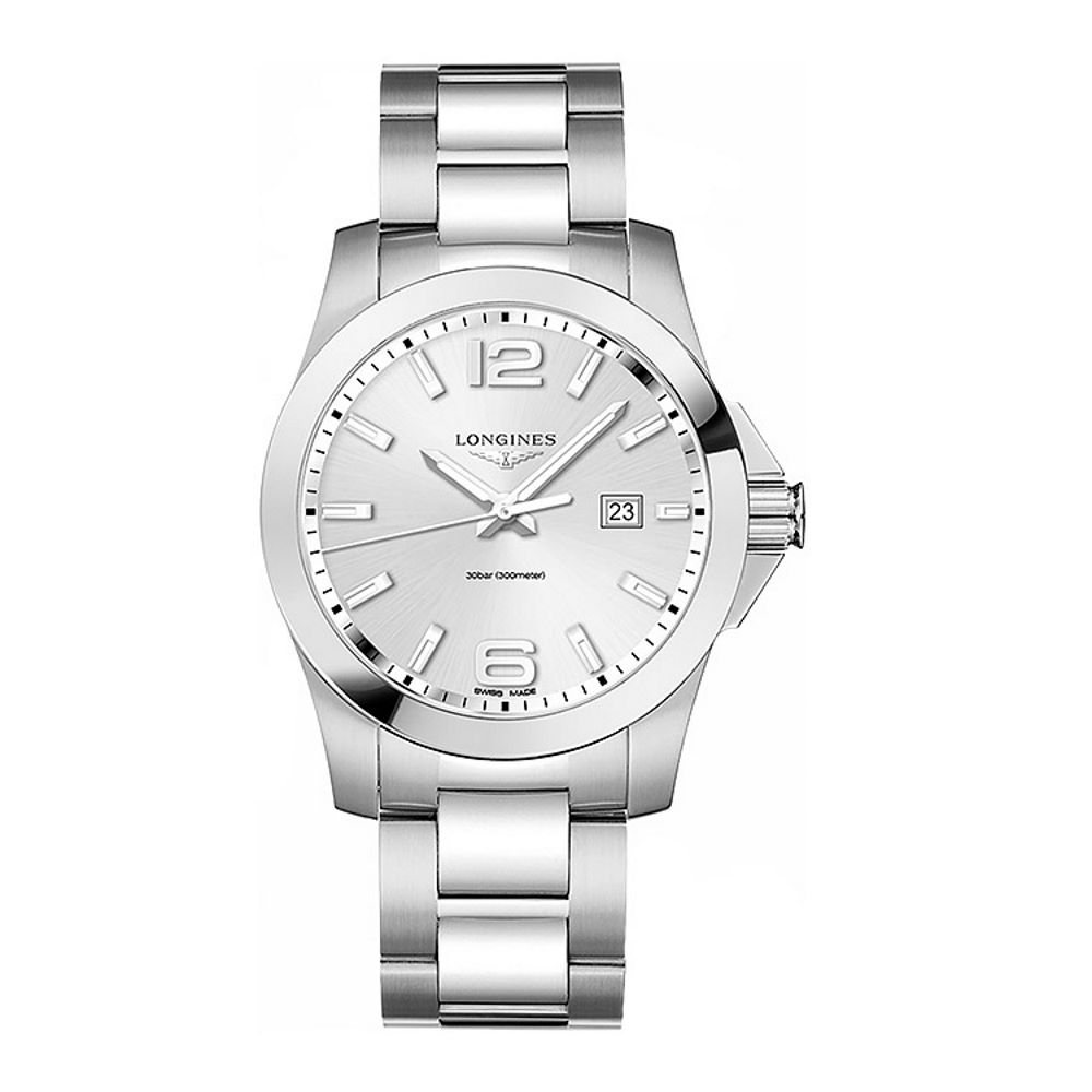 Мужская модель часов из коллекции CONQUEST L37604766 с водозащитой 30 bar (300 m). Диаметр корпуса 43 мм, толщина 11,5. Вес 193,7 г. Корпус круглой формы, задняя винтовая крышка и браслет шириной 22 мм выполнены из нержавеющей стали. Элемент питания RENATA 371. Часовой механизм LONGINES L157. Устойчивое к царапинам сапфировое стекло с многослойным антибликовым покрытием изнутри. Данная модель оснащена функциями отображения часов, минут, секунд и даты, а также функцией индексации заряда батареи E.O.L. Часы выполнены в элегантном серебристом корпусе . Цвет браслета серебристый. Цвет циферблата серебристый. Остерегайтесь попадания часов в воду. ВНИМАНИЕ! Заявленная водостойкость гарантируется только при плотно закрытой или закрученной заводной головке! Швейцарская точность и надёжность, проверенные временем, с международной гарантией от производителя 24 месяца.
