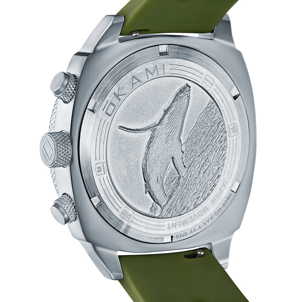 Наручные кварцевые мужские часы марки OKAMI артикул KN6-44-4-YYX-SR-AHH. Корпус выполнен из гипоаллергегнной нержавеющей стали 304L SS. Размер корпуса ─ 44 мм. Минеральное стекло надёжно защищает часы от внешних воздействий. Каучуковый ремень, устойчивый к износу. Водозащита 10 bar (100 m/330 ft)* позволяет плавать в часах. Внимание! Заявленная водозащита гарантирована только при плотно завинченной переводной коронке. Давление выраженное в атмосферах и метрах не должно рассматриваться как эквивалент глубине погружения в воду.Navy. Океан – это символ бесконечности и величия природы, объединяющий все водные пространства Земли. В коллекции прослеживаются мотивы морских животных, характер или свойства которых часто находят свое отражение в сущности человека. Эти часы подойдут исследователям, путешественникам, людям, чей дух неспокоен, как воды океана.