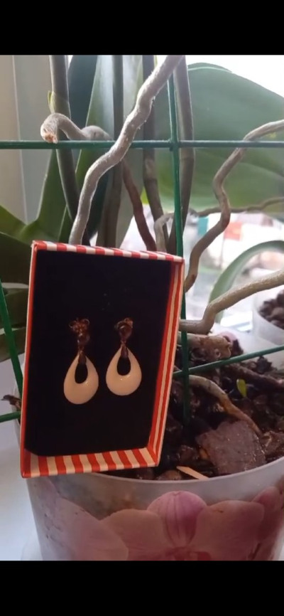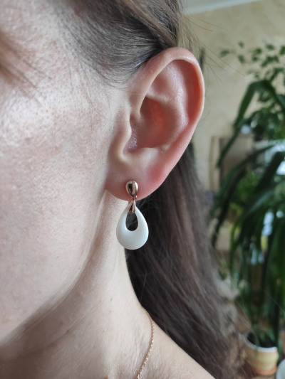 Серьги очень нежно смотрятся, не громоздкие. Но надо иметь ввиду, что керамика сама по себе тяжёлая, с непривычки могут мешать