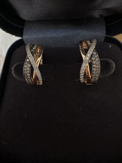 Золотые серьги с бриллиантами коньячными природными