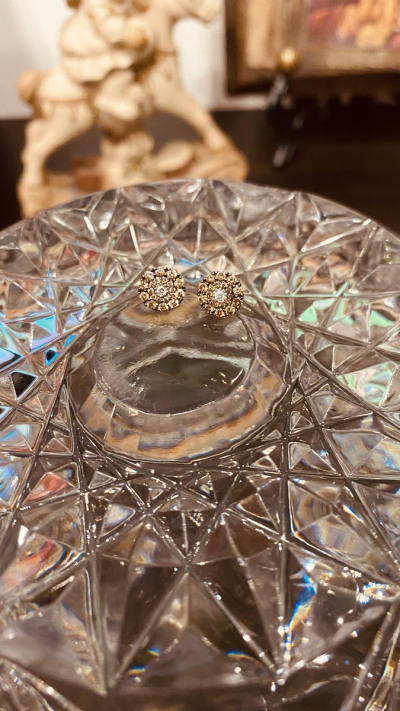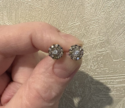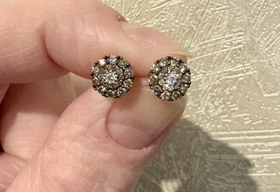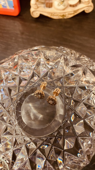 Маленькие, но невероятно шикарные сережки с коньячными бриллиантами, идеально сидят на мочке ушка