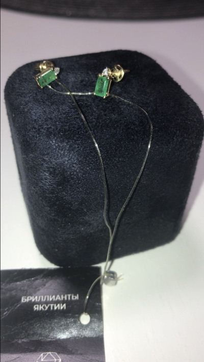 Изумительные серьги из желтого золота с изумрудами на каждый день, можно носить и на второй прокол. В полном восторге от покупки, со всеми скидками — подарок!
