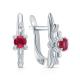 Серебряные серьги с фианитами и рубинами природными