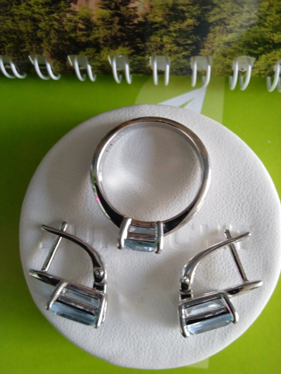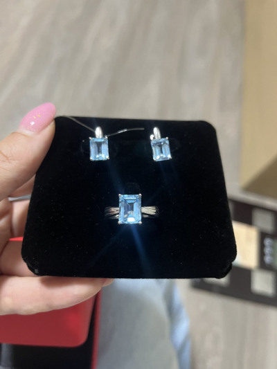 Камни в серьгах не описуемой красоты,иностранные,не маленькие. Из-за них и купила. Не смогла пройти мимо. Серьги на ушке удобные, но у меня на тонкой мочке и низком проколе наклоняются от веса немного к низу, что их самих ничуть не портит. Уже надевала их. Купила к ним такое же колечко. Рядом были еще висячие, с бриллиантами. Но у этих камни больше. Поэтому выбрала их.