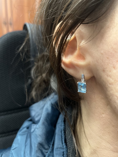 Серьги с 2 топазами скай природными, 5.9 карат;