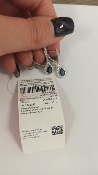 На картинке смотрятся крупнее. По факту они милые, совсем не большие серёжки. Камень почти чёрный, только на просвет видно, что он синий