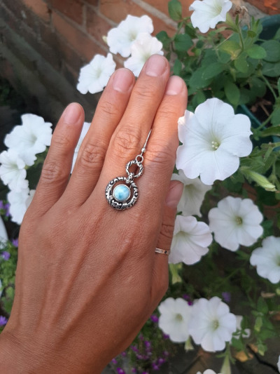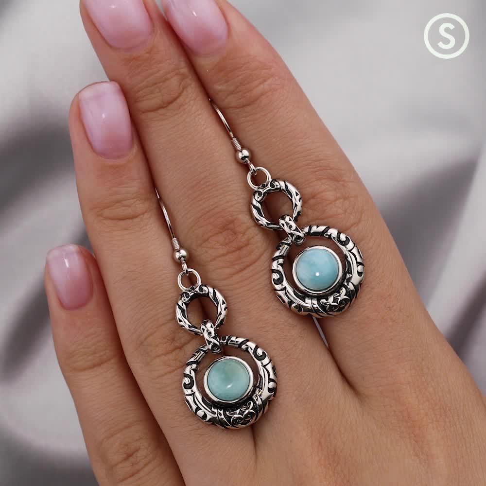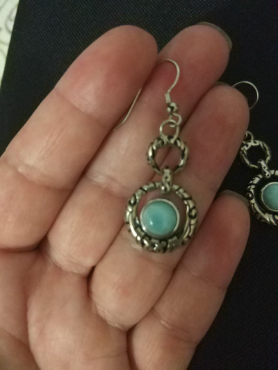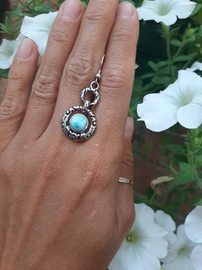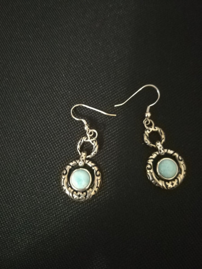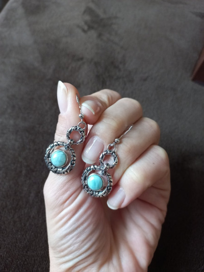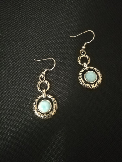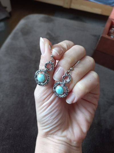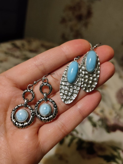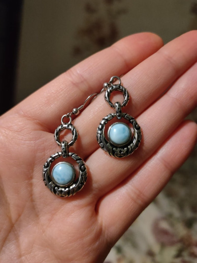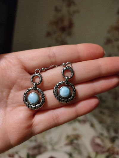 Ларимар сам по себе очень красив благодаря своему нежно-голубому цвету. В длинных сережках смотрится бесподобно! Серьги заметные. Для голубоглазых особенно будут хороши.
