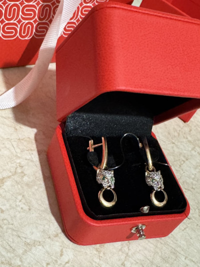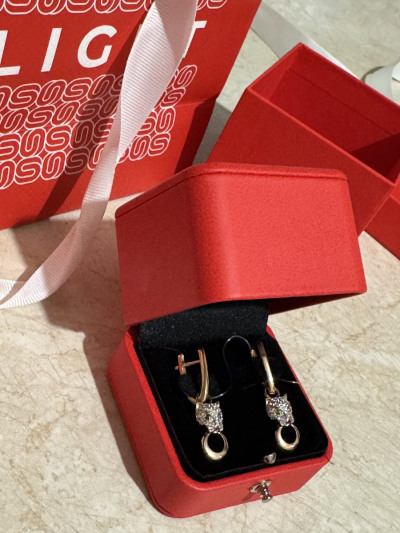 На ушках смотрится совсем подругому они шикарные выбор был между двумя и в итоге сначала купила с цепочками потом всеровно вернулась и за этими ношу с удовольствием