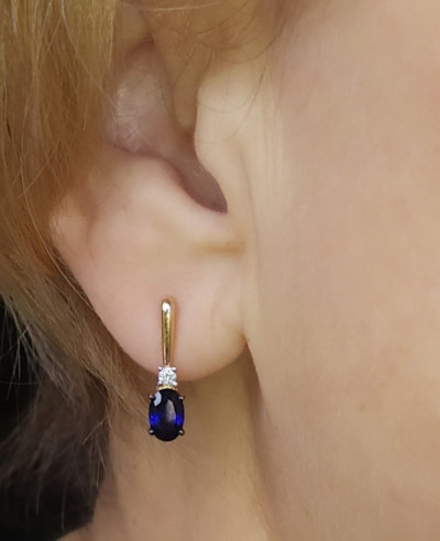 Золотые серьги с бриллиантами природными и сапфирами природными