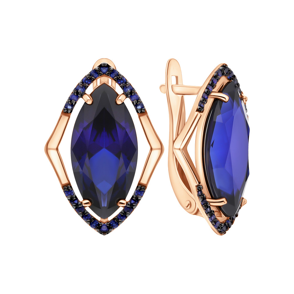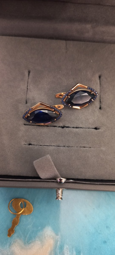 Серьги с 2 сапфирами синтетическими, 9.41 карат;