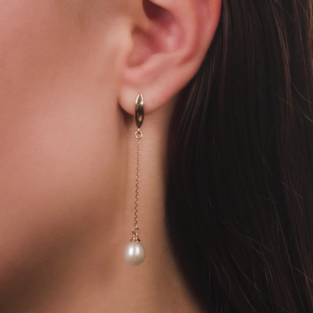 • Серьги с 2 жемчугами пресноводными культ.белыми, тип огранки Б;