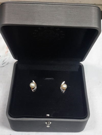 Золотые серьги с бриллиантами природными и жемчугами природными культивированными