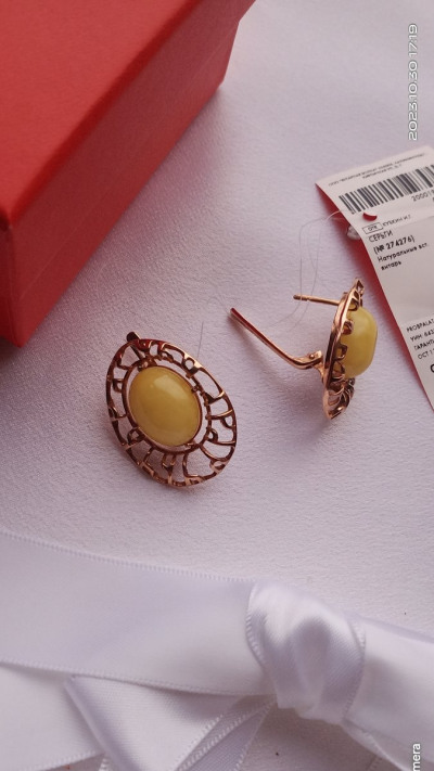 Серьги крупные, нарядные! Жёлтый янтарь выглядит так "вкусно", как карамелька в ажурной золотой сетке. Очень красивые серьги! Спасибо дизайнерам Sunlight ☀